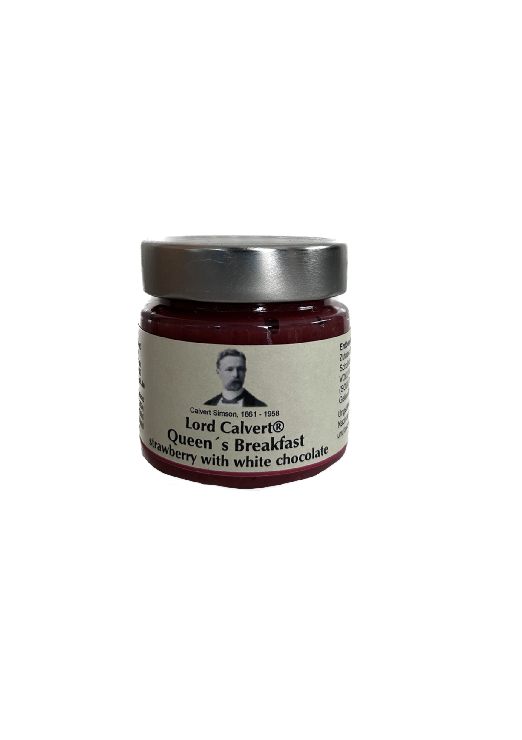So frühstücken Königinnen. Gourmet Erdbeermarmelade verfeinert mit weißer Schokolade. Idel zum Brötchen, Croissant, Waffel oder Crepes.